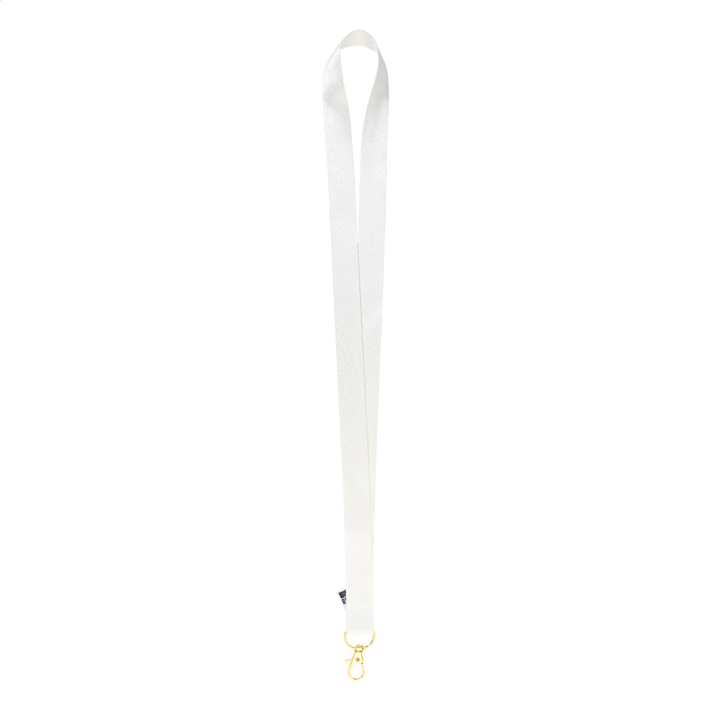 Custom made, RPET-koord met gekleurde metalen karabijnhaak. Met sublimatie bedrukking aan beide...meer