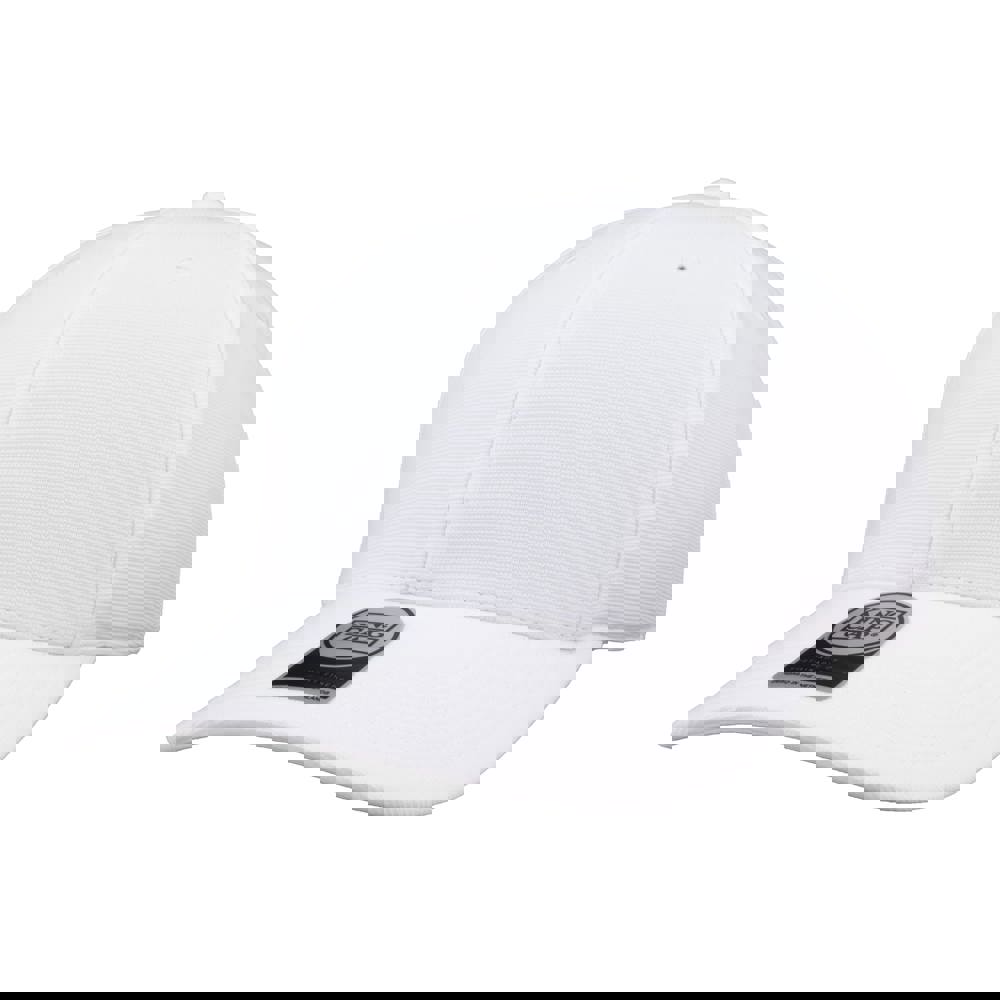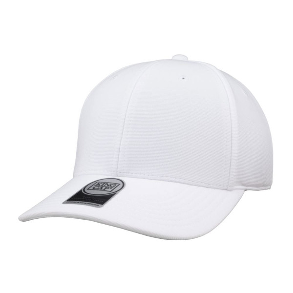 6 panel sports cap met frontvoering. Voorzien van een memory visor. Medium profile. Mat zwarte open metalen gesp sluiting. Uitgevoerd in 97% gerecycled ottoman en 3% spandex. UPF50+ zonbescherming.