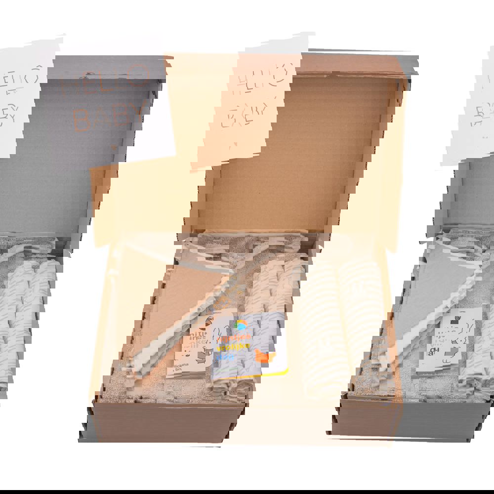 Nijntje geboorte cadeauset L inclusief gepersonaliseerde kaart, in samenwerking met Jollein. Bevat een Nijntje badjas, 2 Nijntje hydrofieldoeken, een Nijntje boekje en een stoffen vlaggenlijn. Verpakt in een bruin doosje met Hello Baby etiket.