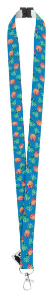 Custom made RPET-lanyard met metalen karabijnhaak en veiligheidsgesp. Met sublimatiedruk op één zijde. MOQ: 100 stuks.