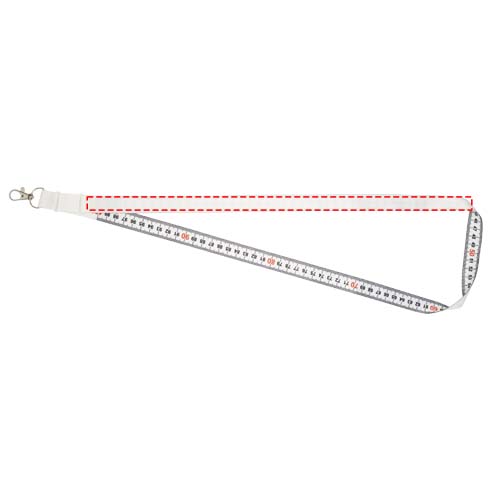 Deze 1 meter lange lanyard is gemaakt van gerecycled PET en is voorzien van een full colour sublimatieprint aan één zijde. De achterzijde heeft een opvallend meetlintdesign, wat zorgt voor een praktische en unieke uitstraling. De lanyard is uitgerust met een stevig metalen haakje en is ideaal voor het dragen van naamkaartjes, ID-kaarten of sleutels – perfect voor gebruik tijdens evenementen, op kantoor of dagelijks gebruik.