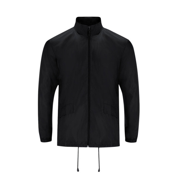 Unisex regenjas met hoge kraag en afneembare capuchon. De capuchon heeft verstelbare koorden voor...meer