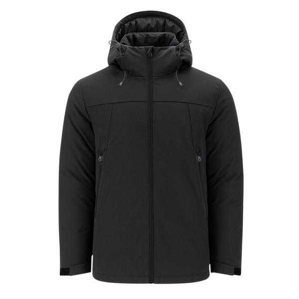 Unisex gewatteerde parka met verstelbare vaste capuchon. Voorzien van zwarte ritssluiting aan de voorkant met kinbeschermer voor extra comfort en bescherming, twee zijzakken met zwarte ritssluiting en verstelbare manchetten met klittenband.