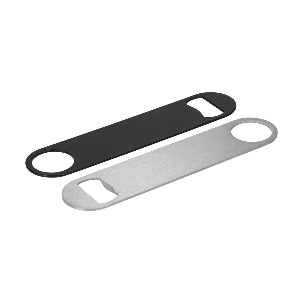 Eenvoudig, maar effectief. Platte flesopener van roestvrij staal. Geschikt voor kleine spinner-shows achter de bar dankzij het gat. Ook goed te bevestigen op magnetische oppervlakken.