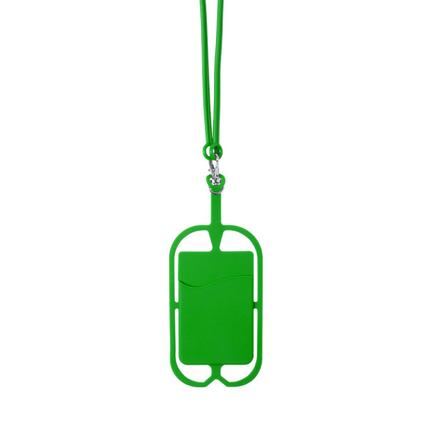 Praktisch en comfortabel siliconen lanyard in diverse kleuren met ingebouwde smartphonehouder en kaartvak. Met verstelaccessoire en karabijnhaaksluiting. Dit artikel kan alleen in 1 kleur (zwart/wit) worden bedrukt.